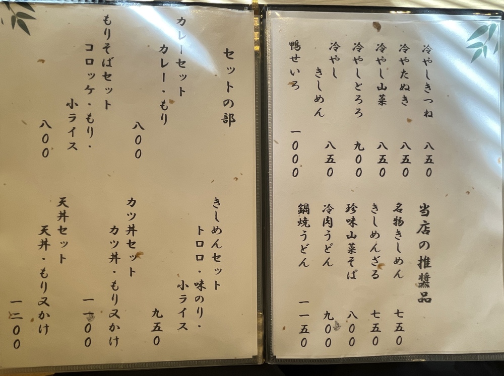 次のページを開くと、遂に「当店の推奨品、名物きしめん」の文字がありました。
