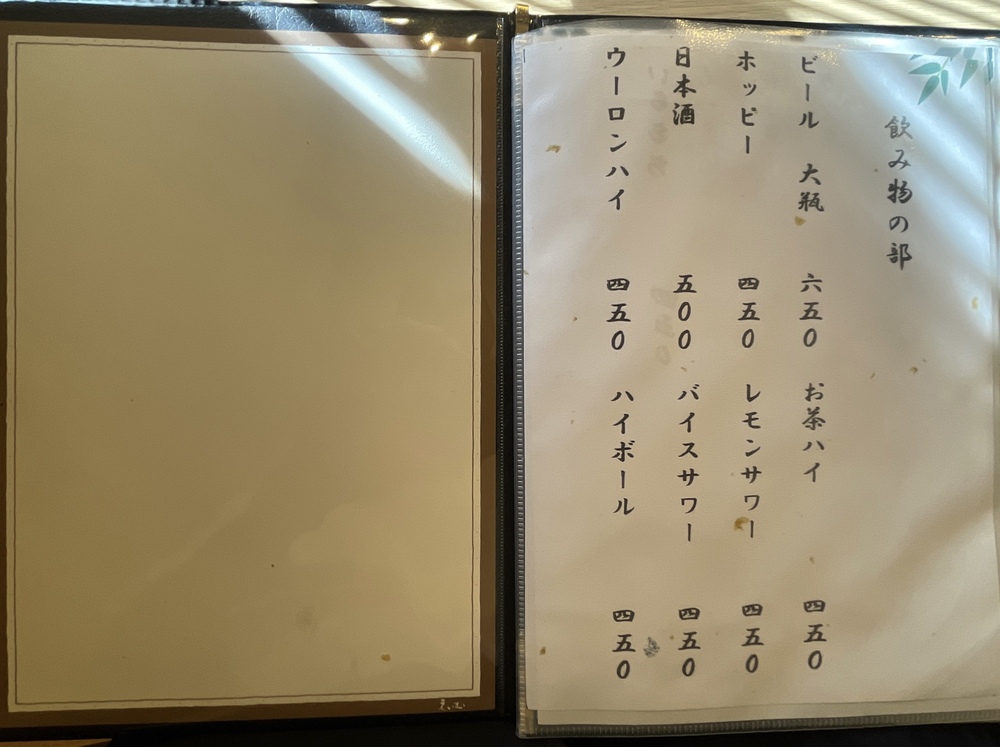 ビール、ホッピー、日本酒、酎ハイ、ハイボール。最小限ながら全て揃ってます。