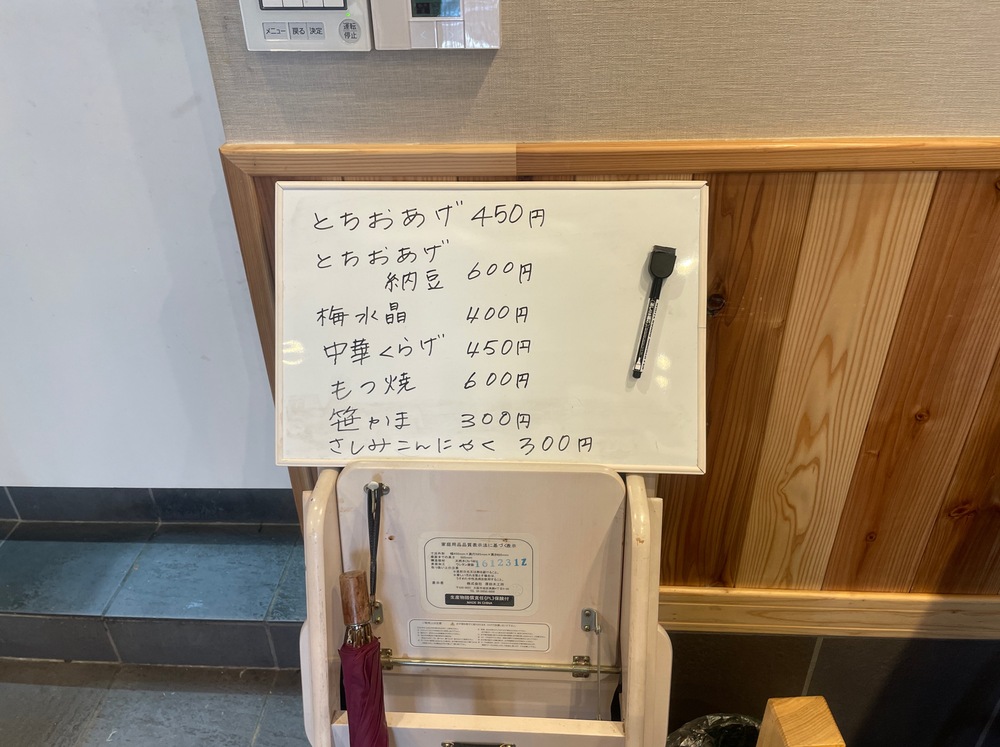 他にもホワイトボードに本日のおつまみメニューがありました。