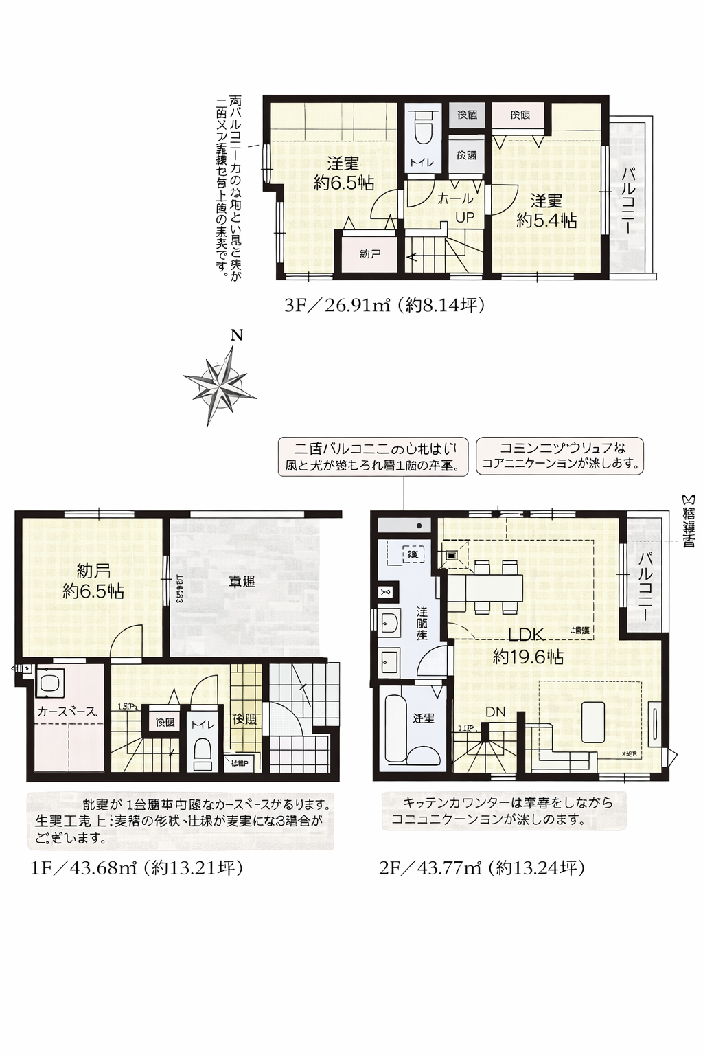 S約6.5畳 1階 LDK約18.6畳 2階 洋室約5.4畳 3階 洋室約5.4畳 3階 +WIC |