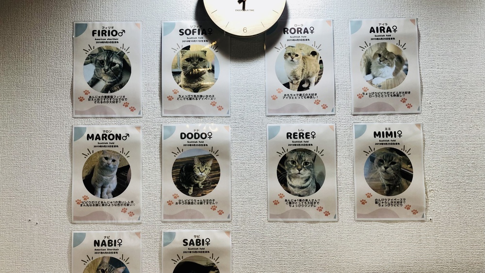 壁には猫ちゃんのプロフィールが貼ってあります。