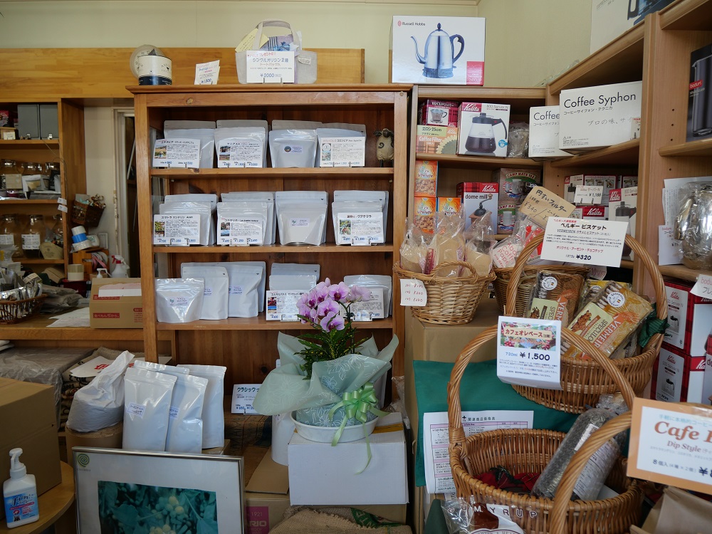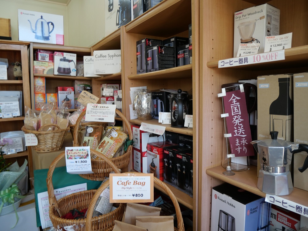 コーヒー豆だけではなく、コーヒーを飲むためのペーパーフィルターやコーヒーポットなども販売されていました。