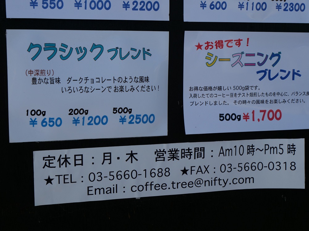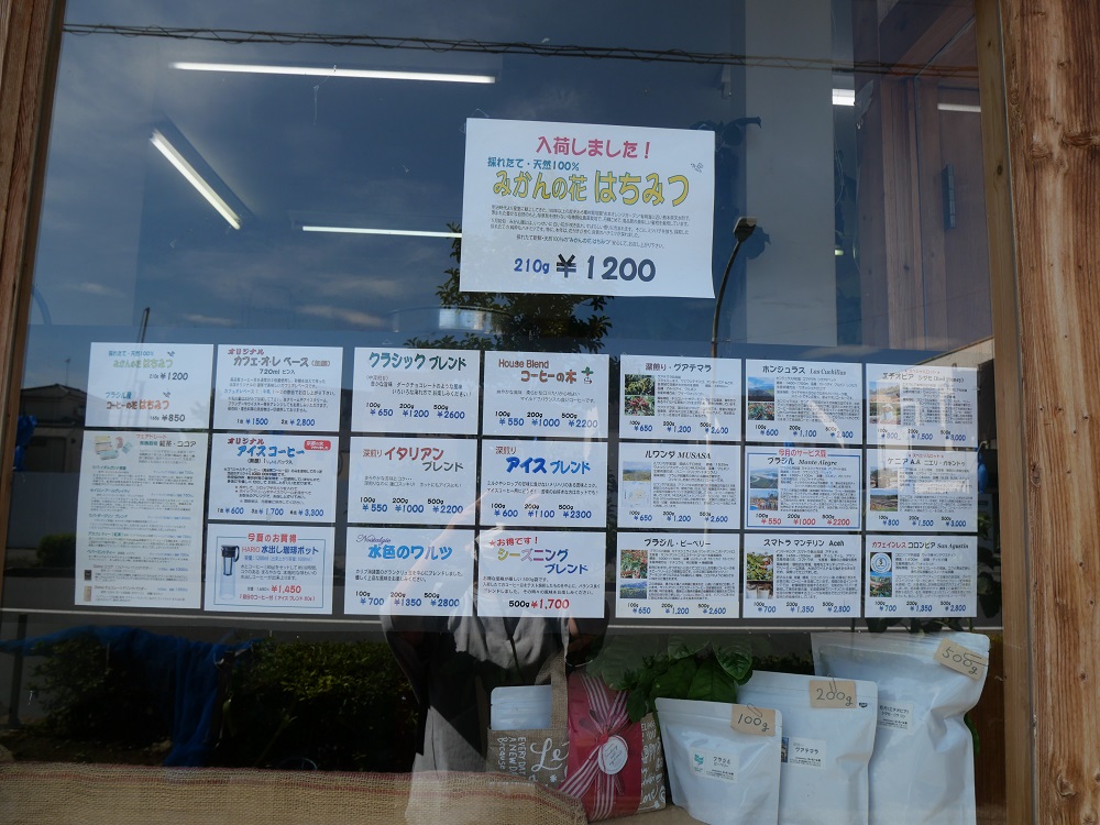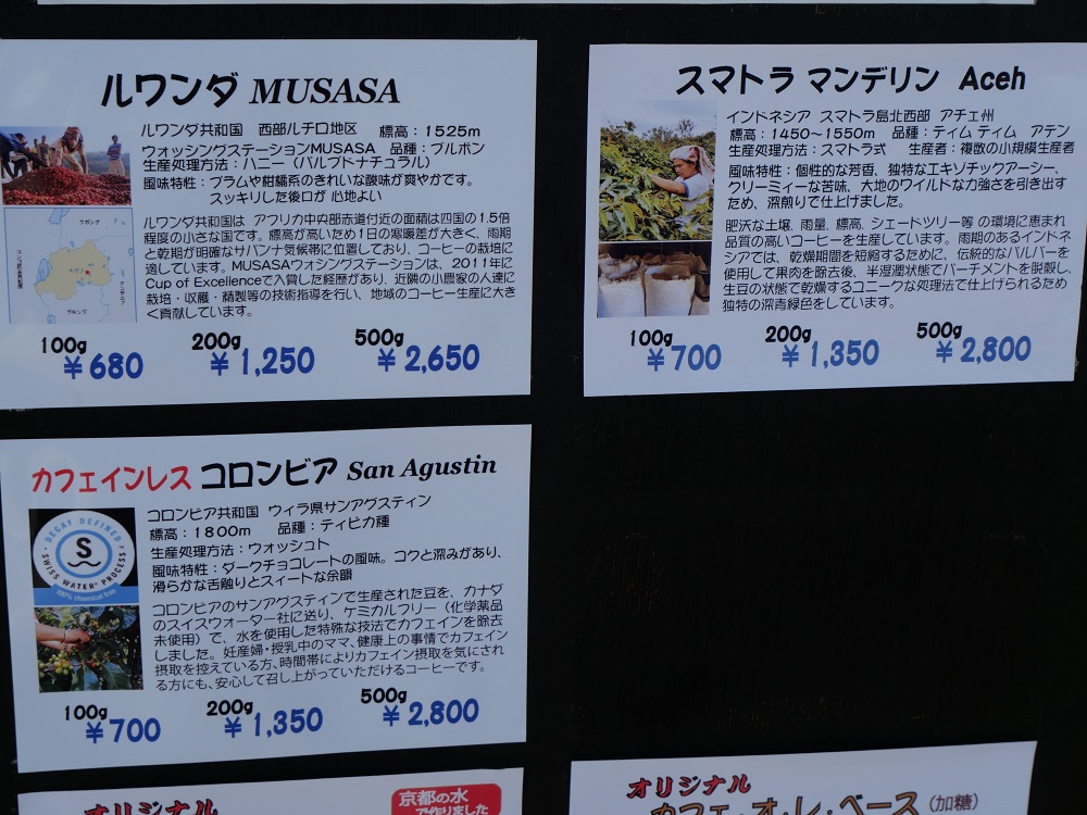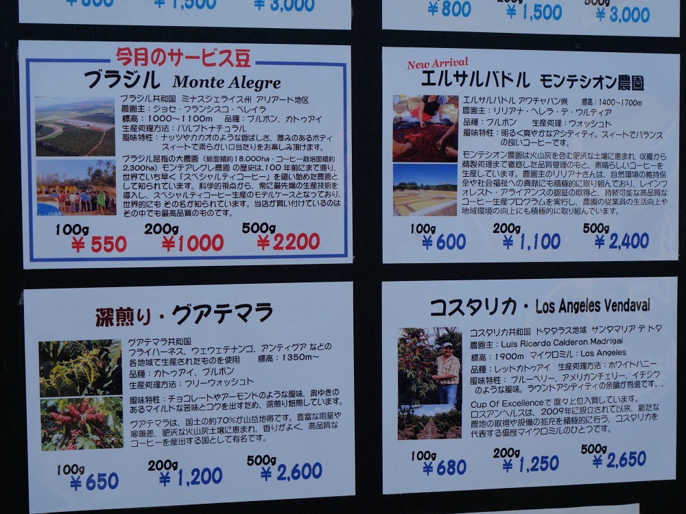 コーヒー豆は、店先に貼ってあるメニューを見て注文します。