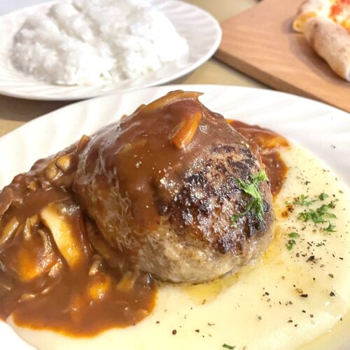 特製デミグラスソースの煮込みハンバーグ、甘すぎずお酒にもあうと思います。