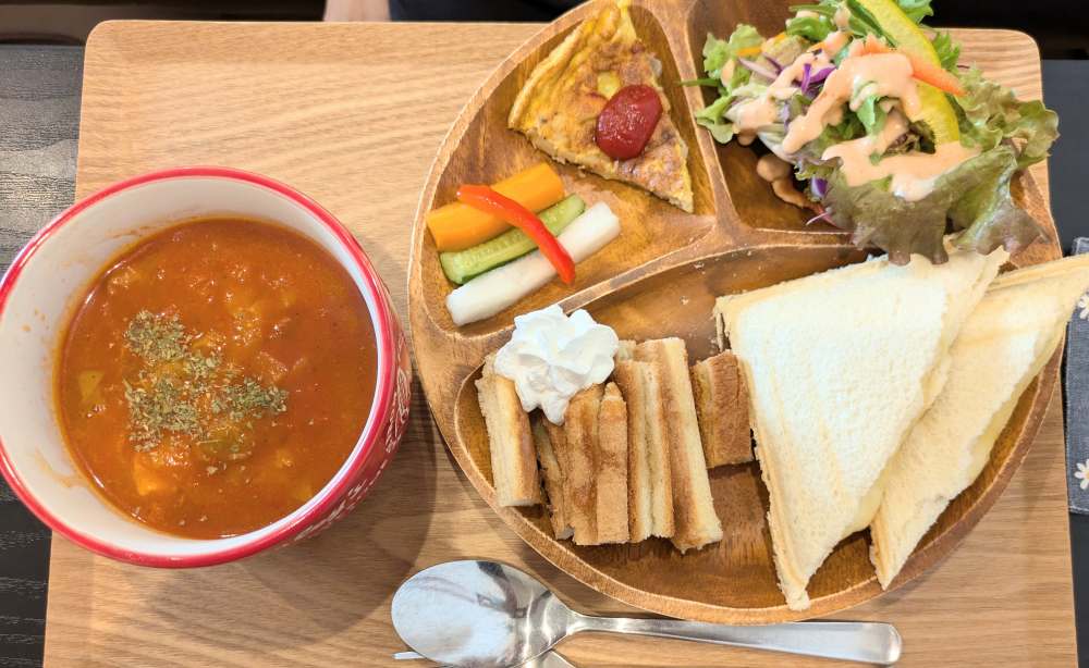 一緒におとずれた母は、ミネストローネとホットサンドのランチセットを注文しました。