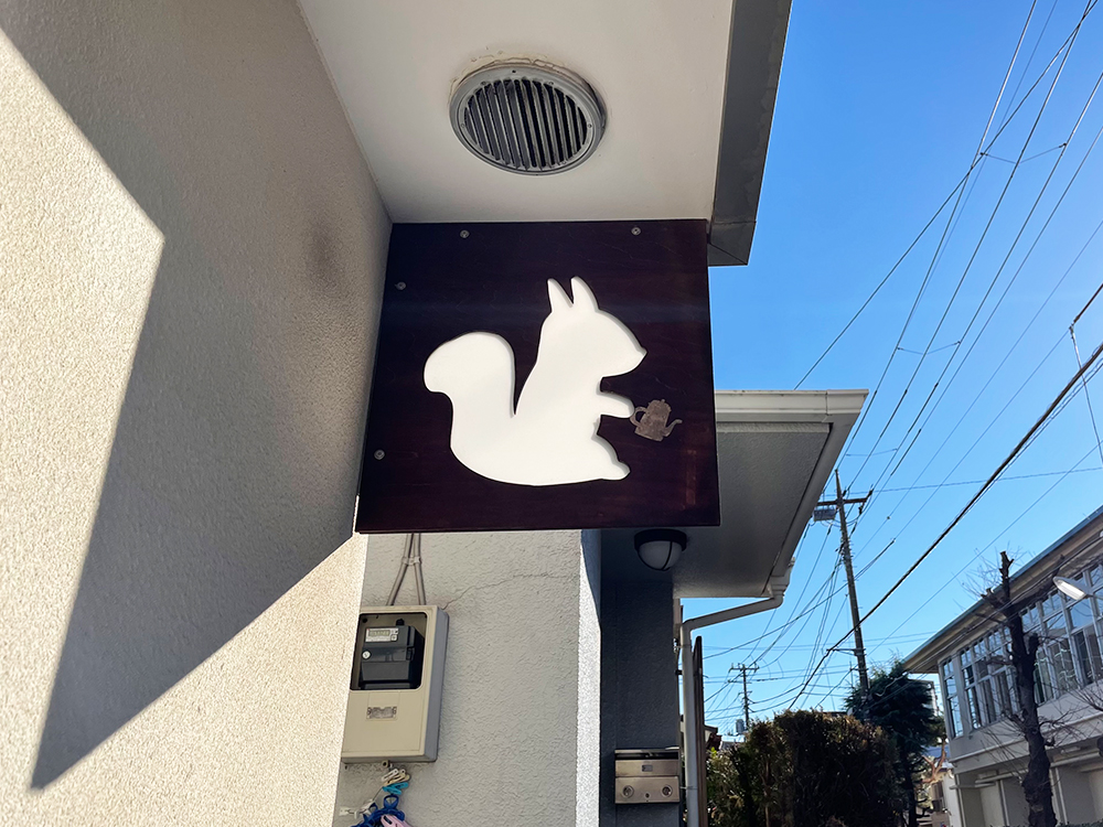 店名の通り、かわいらしいリスがドリップしているイラストの看板が目印です。