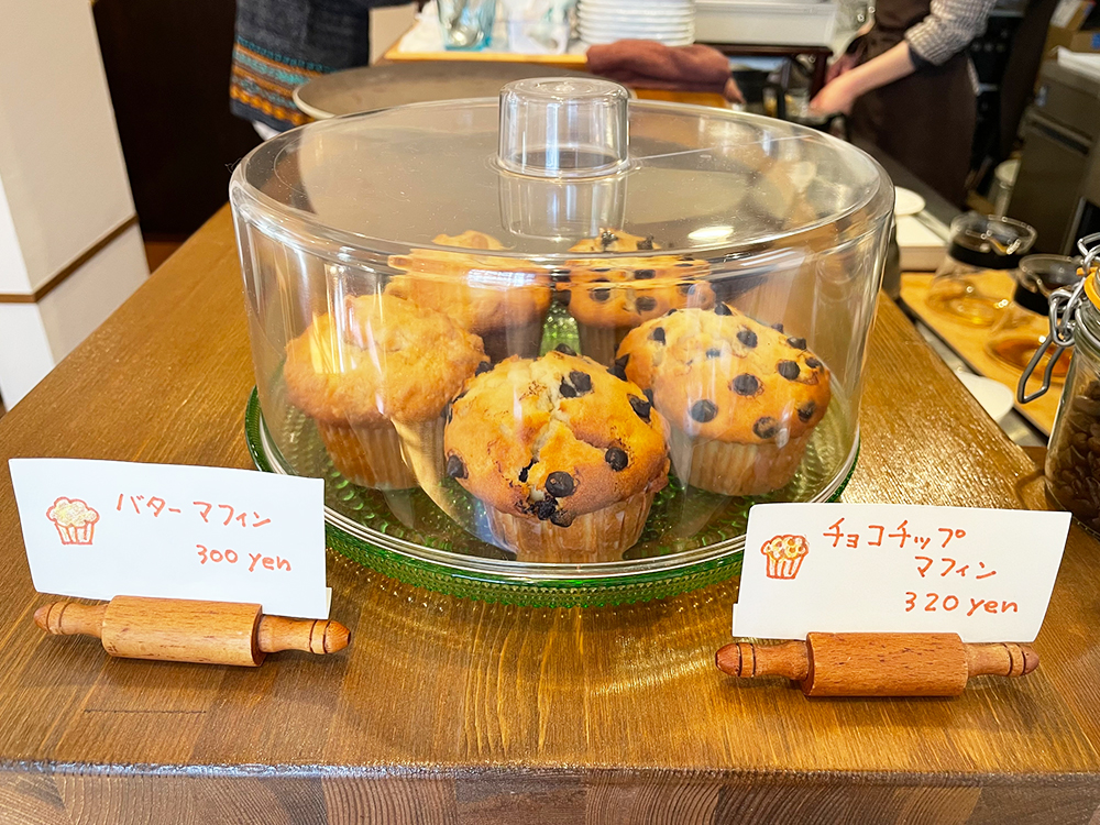 「エゾリス珈琲店」では、店主さんが焼いた手作りのマフィンやパウンドケーキ、ホットサンドなどを食べることができます。