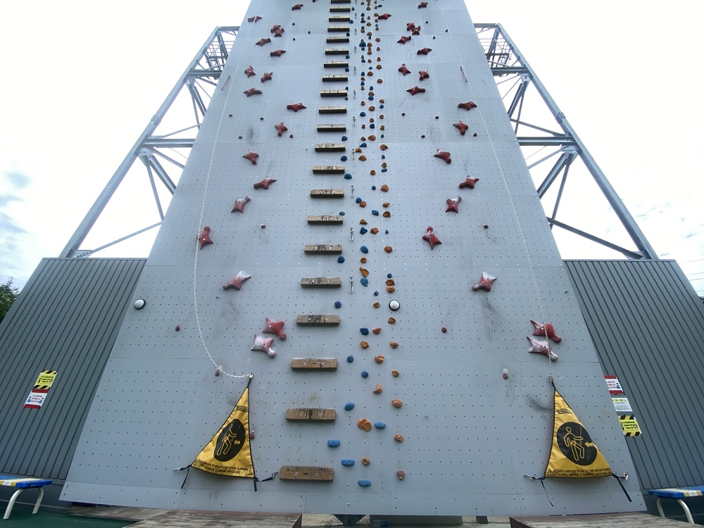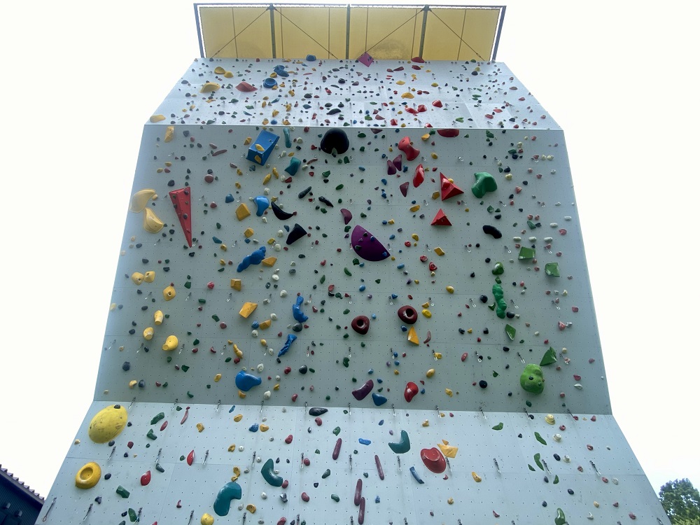 ボルダリングの壁がある建物の外に出ると、そこには巨大な壁がそびえ立っていました!