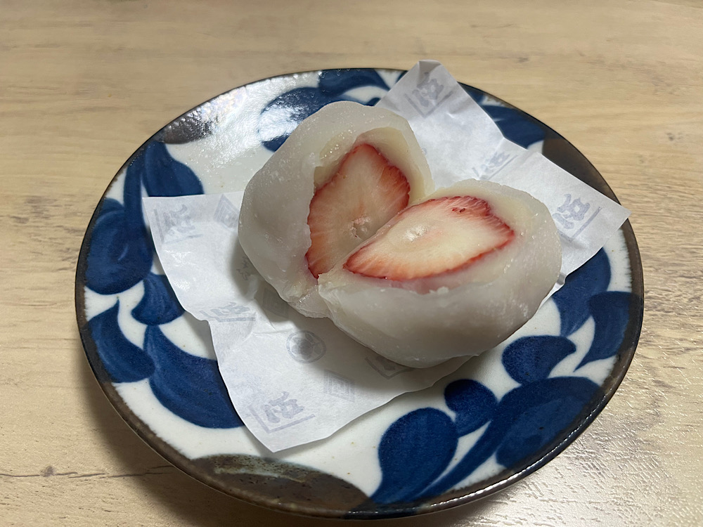 ほどよい甘さの白餡とみずみずしいいちごの酸味が絶妙な贅沢ないちご大福でした。