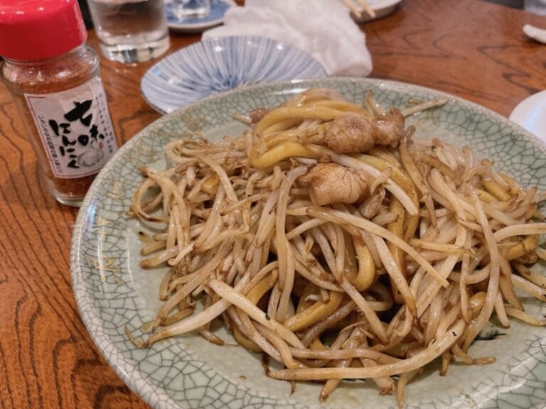 通常の3倍くらいある太麺を豚バラともやしと一緒にラードで炒めただけのシンプルな焼きそばですが、これが実においしいんです。