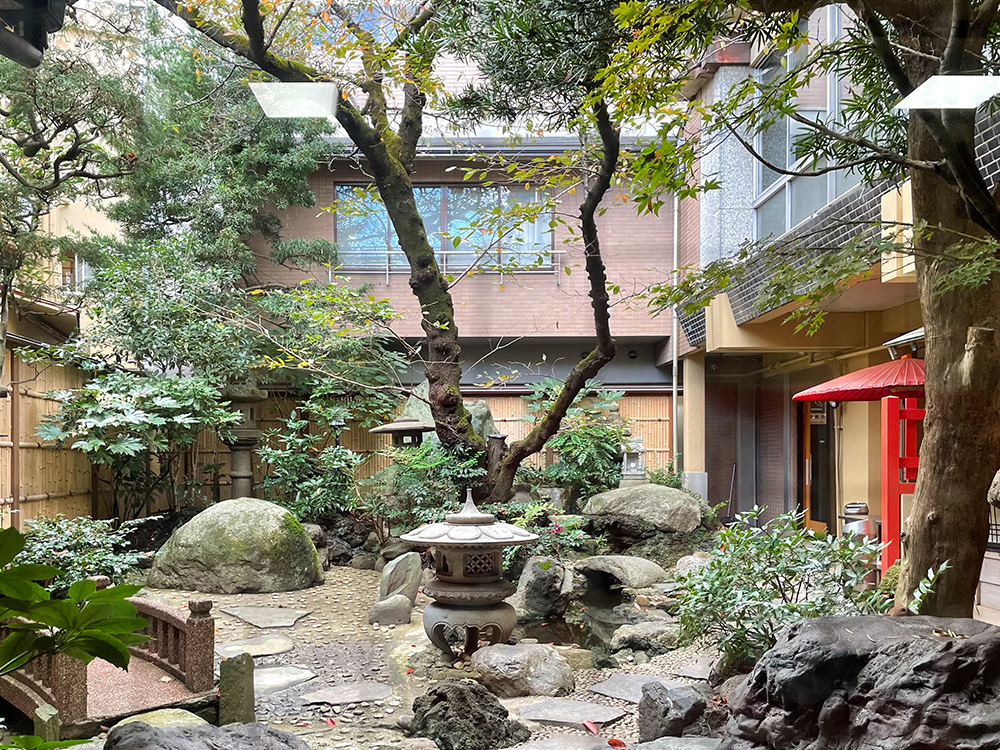 食堂スペースの奥には美しい中庭もあります。