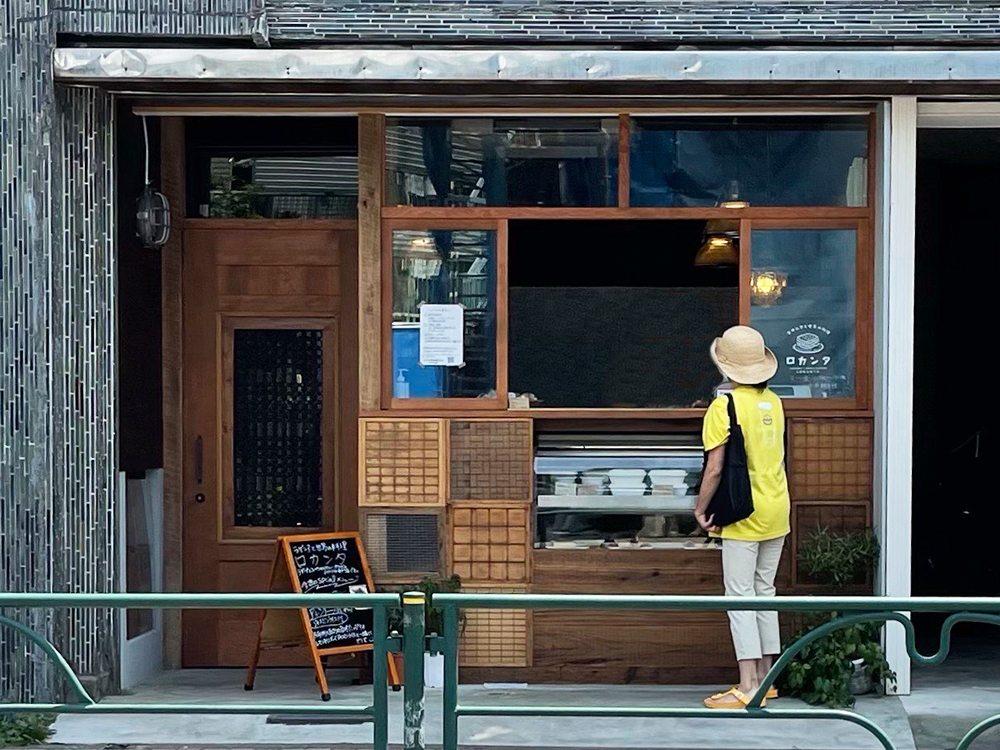 踏切を背にまっすぐ進むと黄色いテントの伊勢屋があり、その横に木造で作られたショーケースのお店が現れます。
