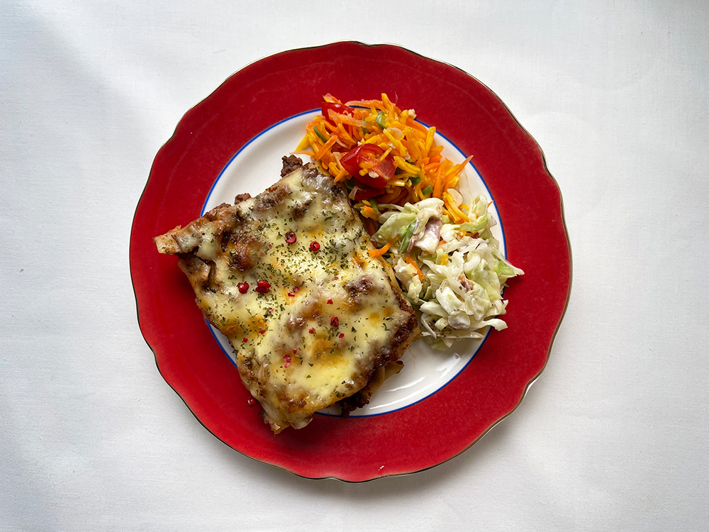 コールスローはマヨネーズとチーズがすこし混ぜてあるので、さっぱりとした中にコクがあり、ラザニアと相性バツグン。