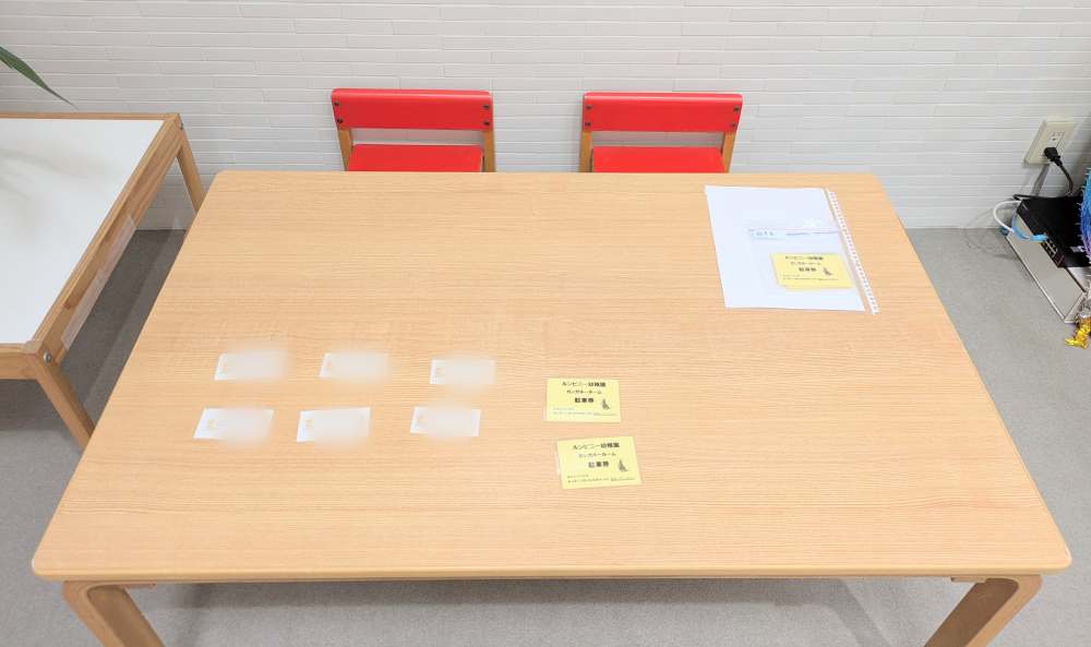 この日のカンガルールームに参加する子どもの名前が書かれた名札と、駐車券が用意されています。