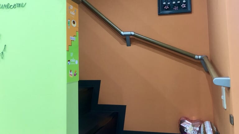 2階へ行ける階段です。案内には「2階イートイン」と書いてあります。