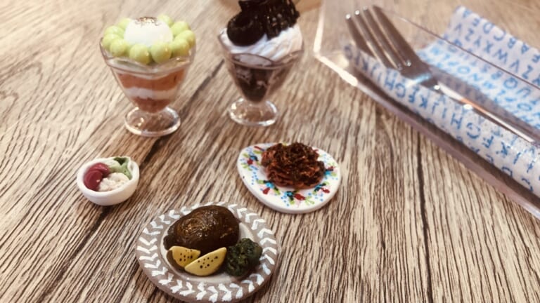 ミニチュアの完成度の高さを確認しました!お皿の柄までそっくりです。