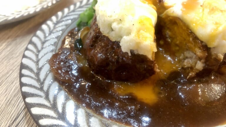 半熟の卵とまろやかなデミグラスソースが相まって、さらにまろやかになります。