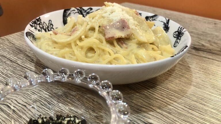 ベーコンと玉ねぎが入りクリーミーで、コクがあります。