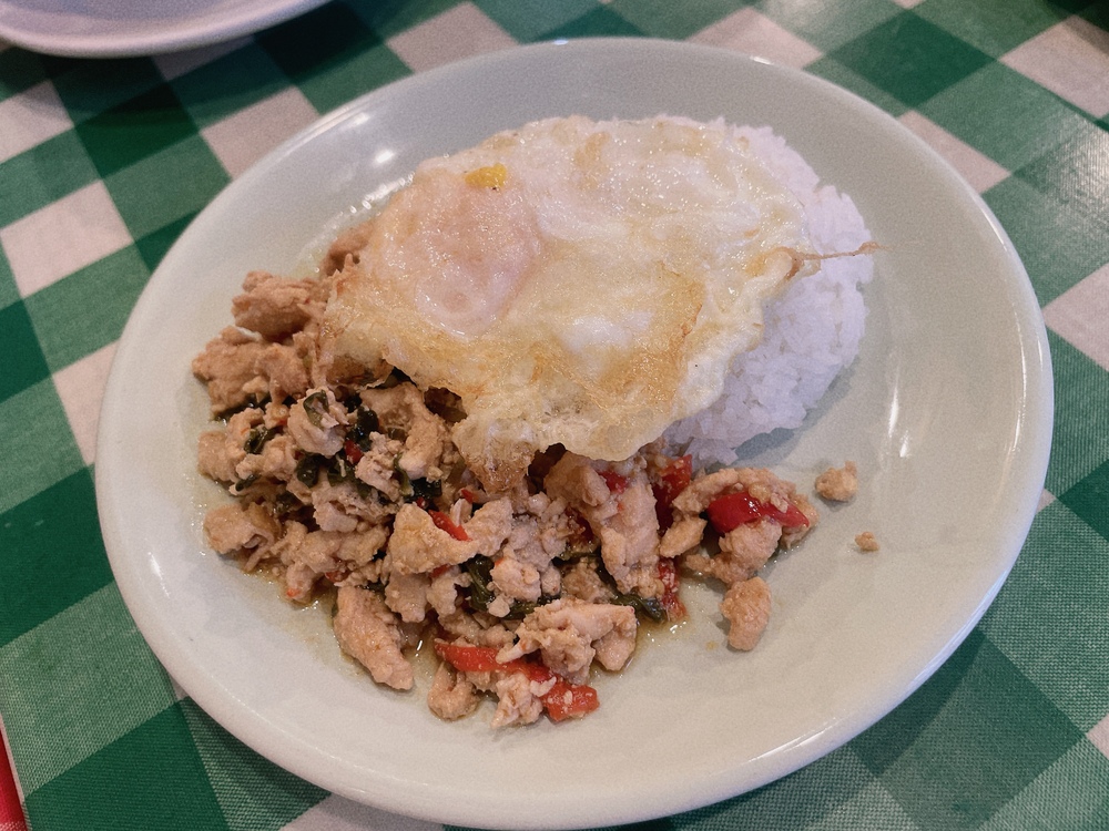 ナ・トゥンテンのガパオライスはお肉がしっかりしていておいしいです。