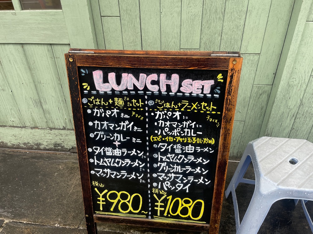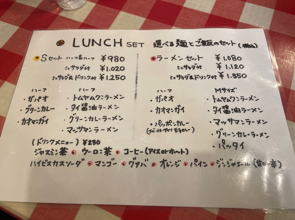 私はパッポンカレーとタイ醤油ラーメンセット、ミニサラダ付きを注文しました。