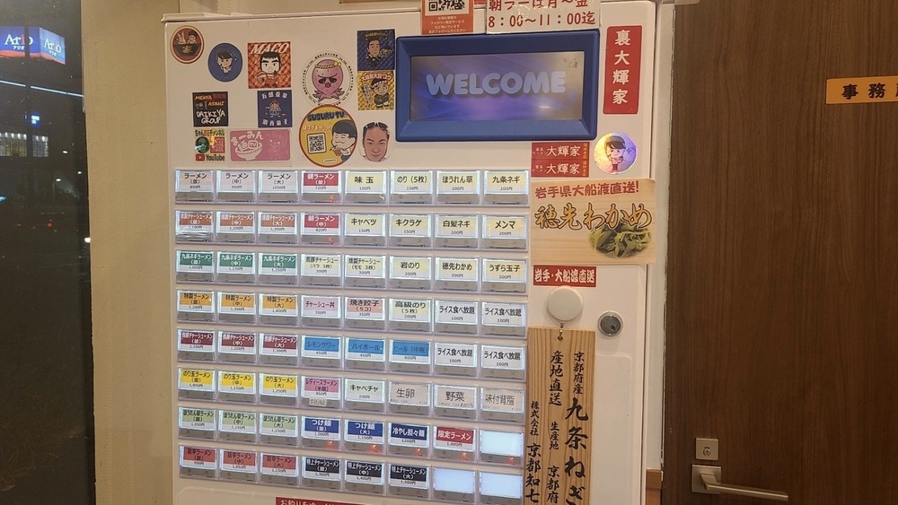 お店は食券制で、入口すぐ横に券売機がありました。券売機には有名なグルメ系YouTuberの方のステッカーが貼られており、期待度が高まります。