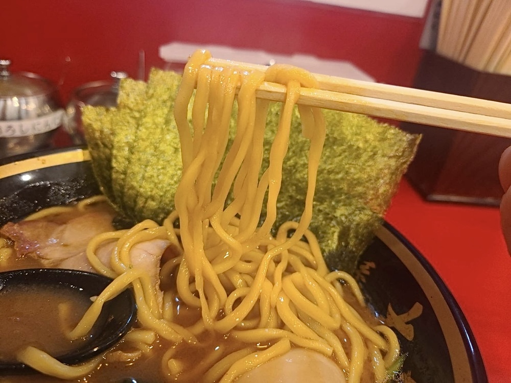 スープは一般的な家系ラーメンと比較すると、濃厚な味で、とろっとした重みのあるスープが特徴的で、スープを一口飲むたびにライスが欲しくなります。
