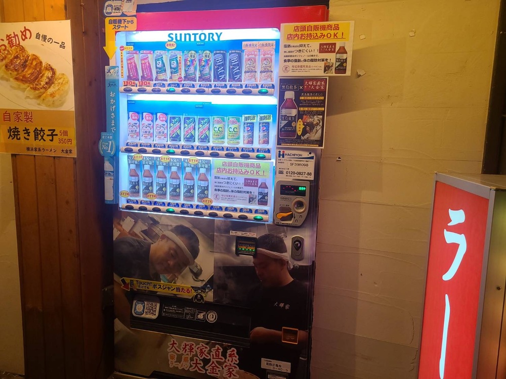 なんと大金屋は、外にある自動販売機で購入した商品の持ち込みOKだそうです。