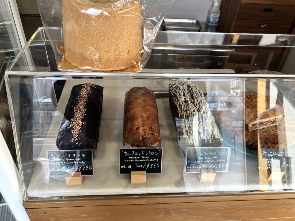 お店に入って最初に目に入ったのが、ショーケースに並んだおいしそうなパウンドケーキでした。