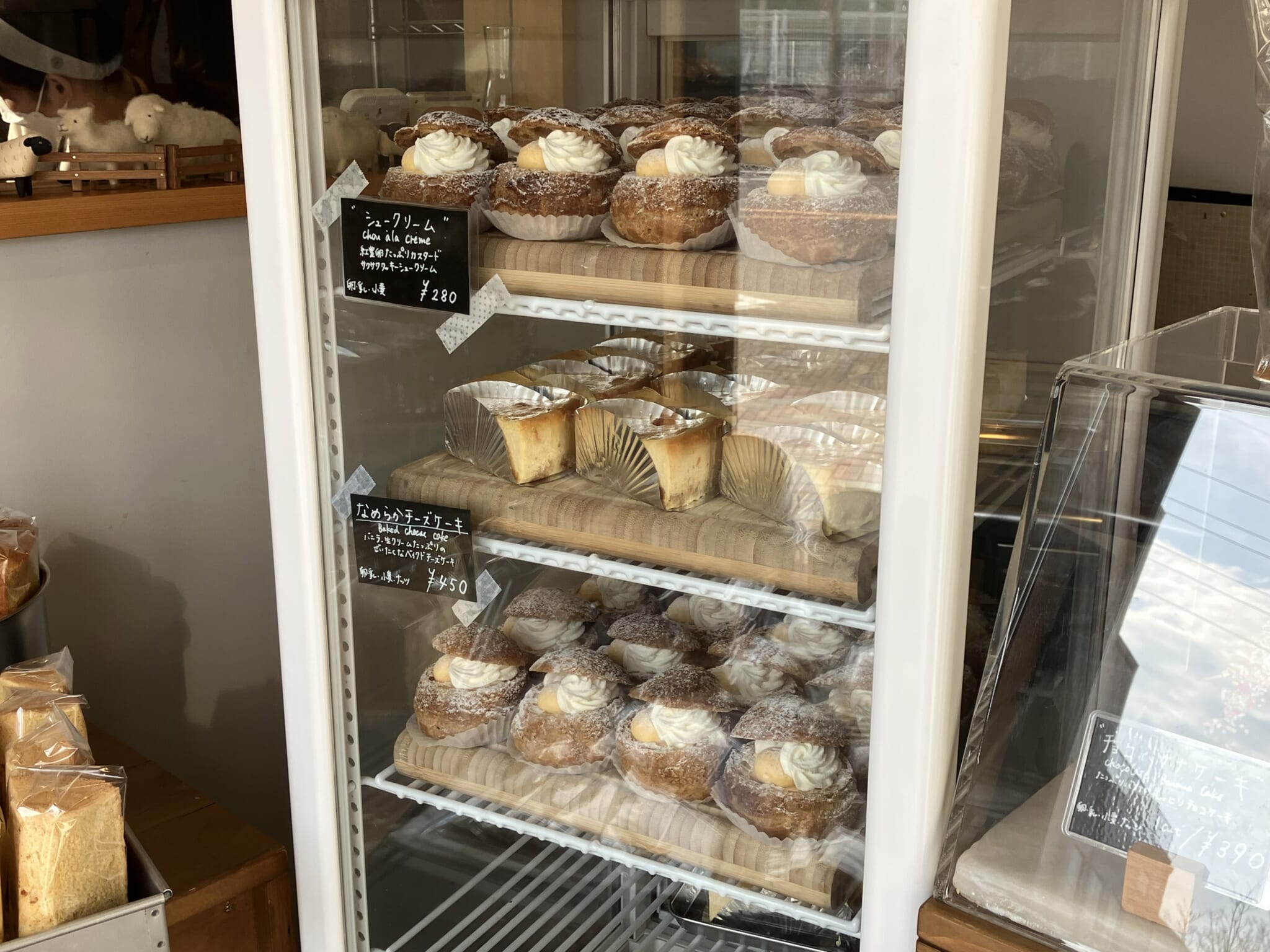 その横にはシュークリームとチーズケーキが売っていて、シュークリームがおすすめと伺ったのでこちらも迷わず購入!