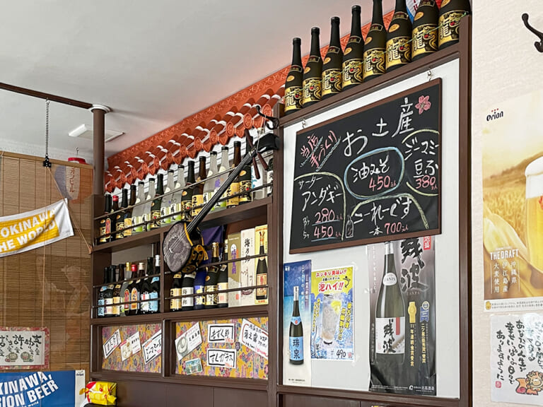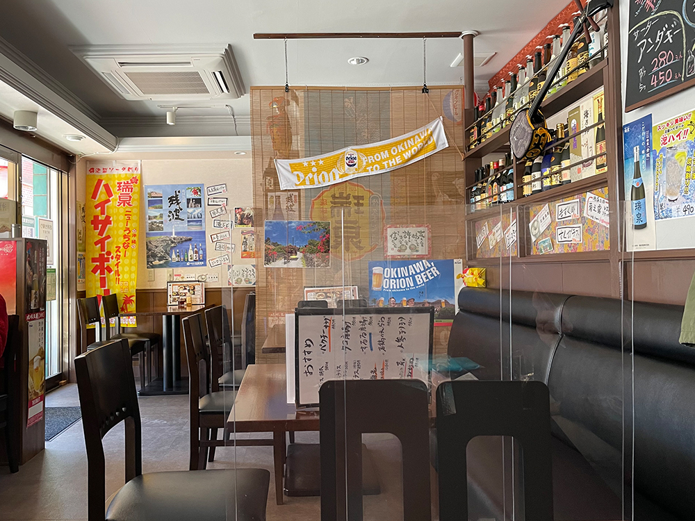 壁には沖縄の伝統楽器・三線が飾られていたり、オリオンビールのちょうちんがぶらさがっていたりと、沖縄感あふれる内装です。