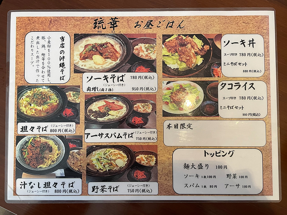 ソーキそばやタコライスなど沖縄の代表的な料理がずらり。