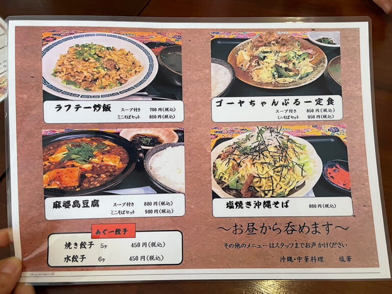 沖縄料理と中華料理というおもしろい組み合わせのお店ですね。