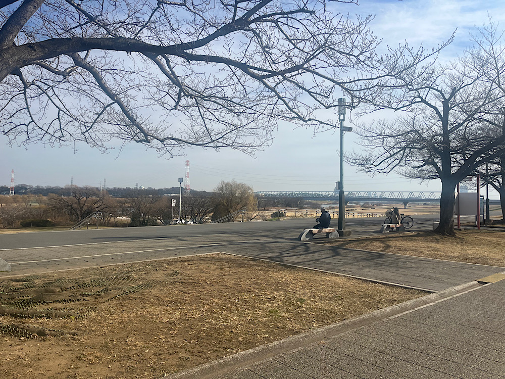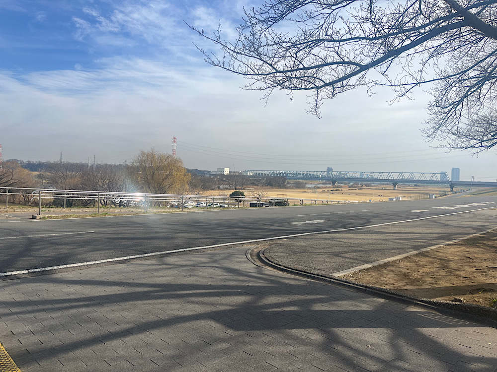 土手に隣接する公園のため、公園の広場からそのまままっすぐ進むと土手に出ることができます。目の前には江戸川が流れ、鉄橋を電車が渡る様子も見ることができますよ。
