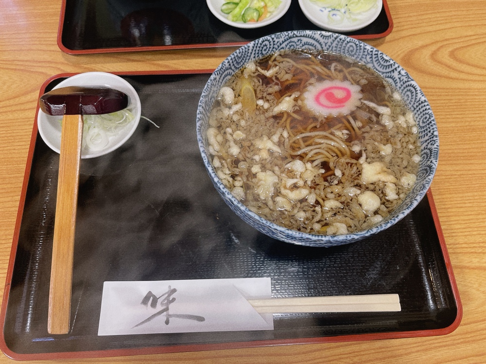 カウンターで優雅にお酒を召し上がっている常連さんたち以外は、ランチメニューを頼まれる方がほとんどですが、この日は、シンプルにたぬきそばをいただきました。