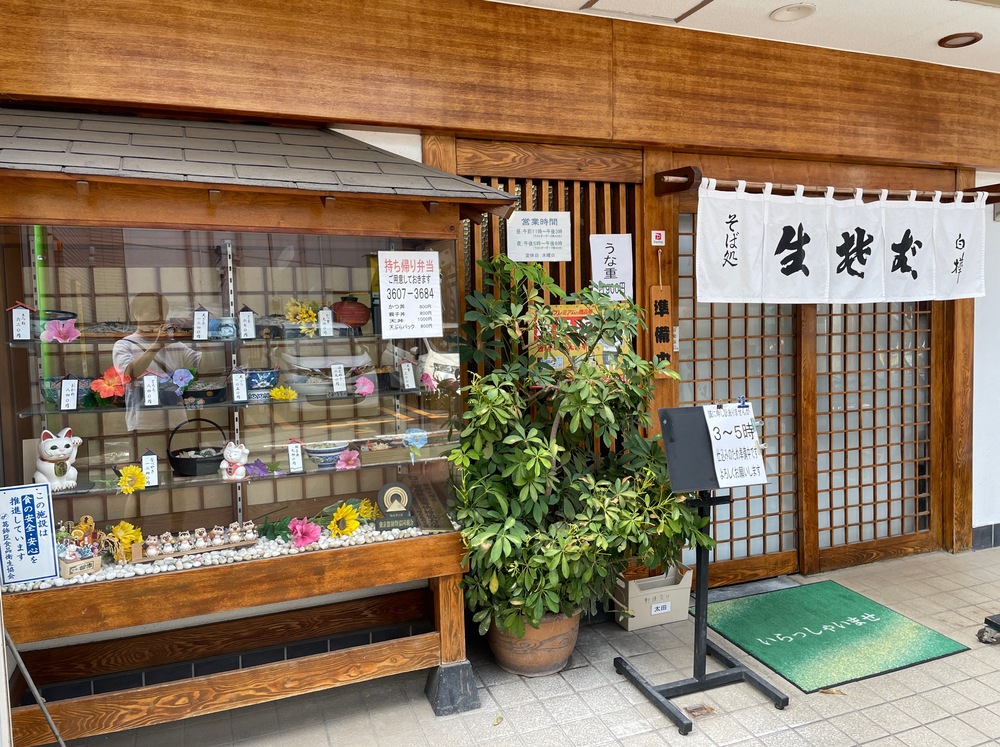 - 白いのれんに筆文字で「生蕎麦」と書かれている