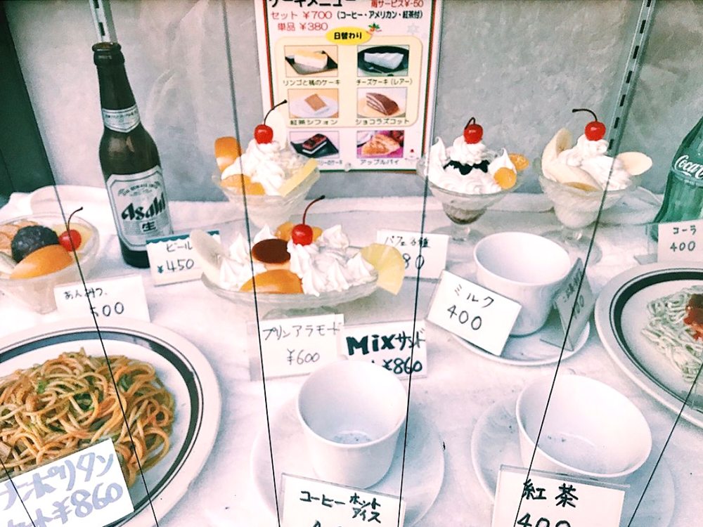 ウィンドウディスプレイには可愛らしいパフェがたくさん。