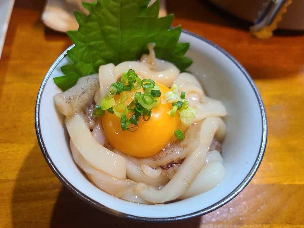 イカ卵黄は、名前の通りイカの刺身と卵黄を絡めて食べるおつまみです。イカ自体にも味付けはされていますが、そこに卵黄を混ぜることで、よりまろやかな味が楽しめます。