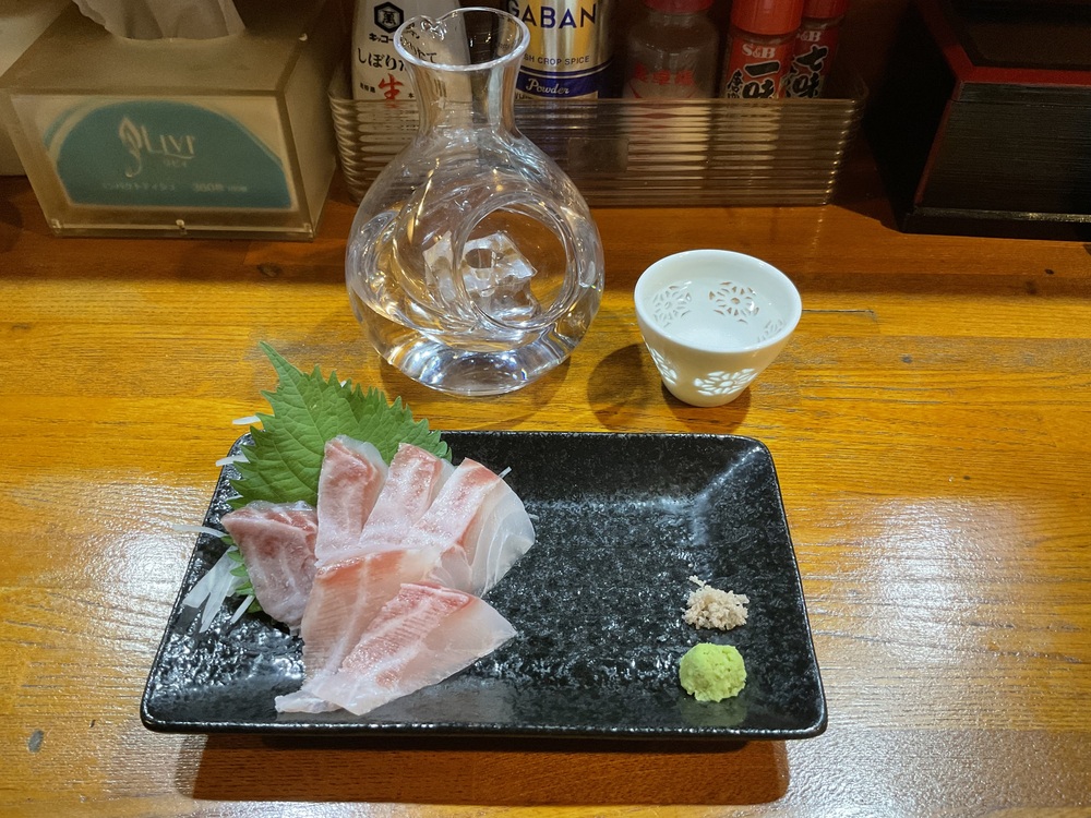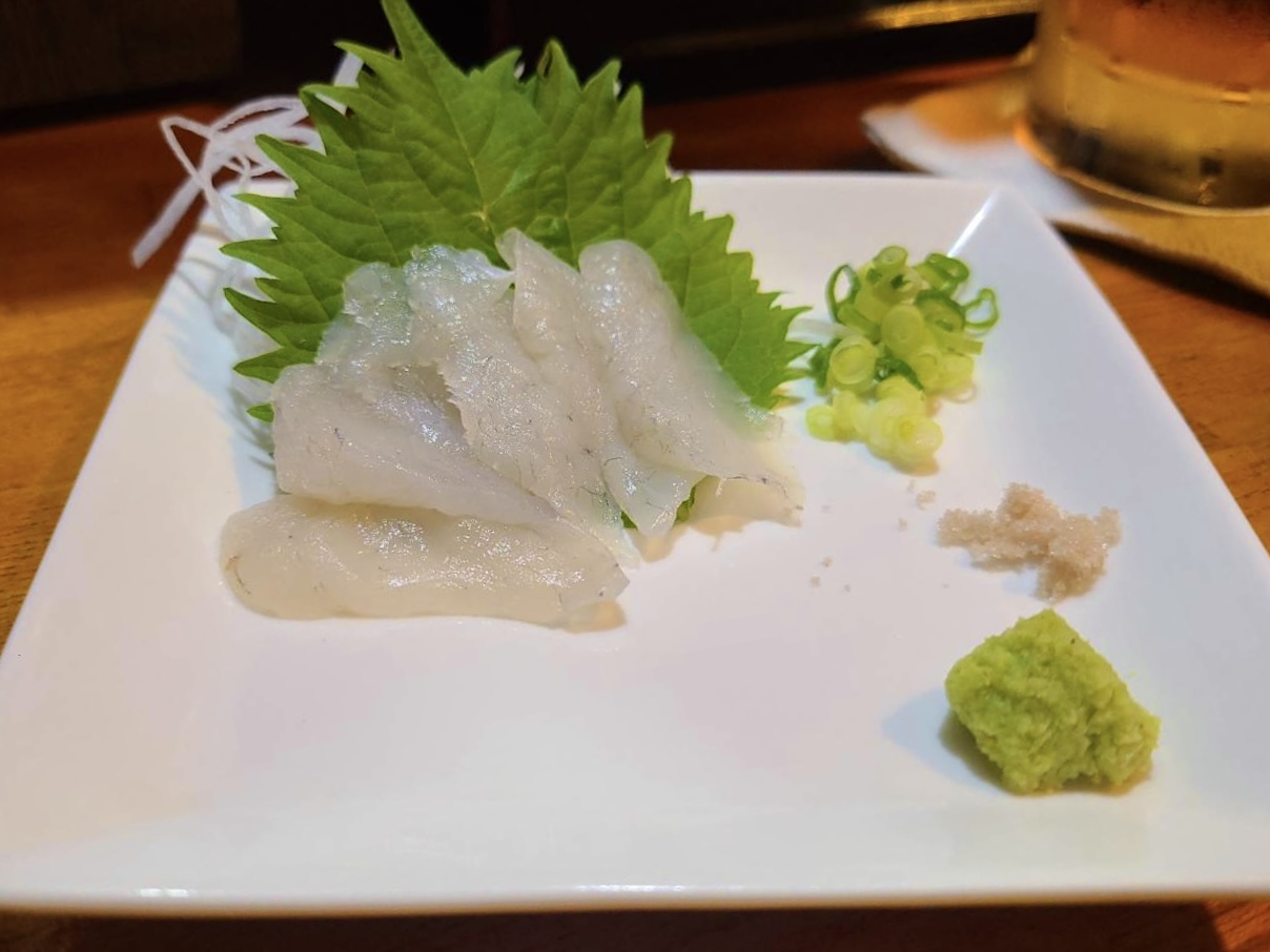 ヒゲソリ鯛の身はほんのりピンクがかっており、淡白でかつ脂がのっています。身の弾力も強く、噛めば噛むほどおいしいお刺身でした。これは絶対に日本酒にも合うこと間違いなしです。