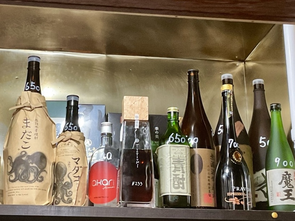 メニューの他にもいろんな種類のお酒があります。日本酒と焼酎も日替わりメニューが用意されていました。店内のホワイトボードにて確認できるので、ぜひ見てみてくださいね。