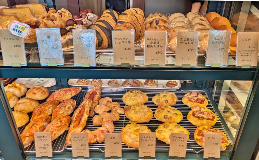 少しドキドキしてお店に入ると、目の前にはずらりとパンが並んだショーケースが広がります。