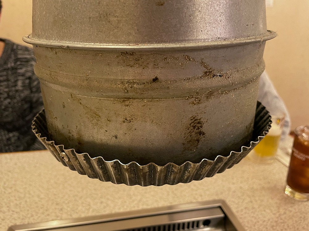 ふと網の上にある排煙フードを見ると、なんだか見たことあるようなものがくっついています。