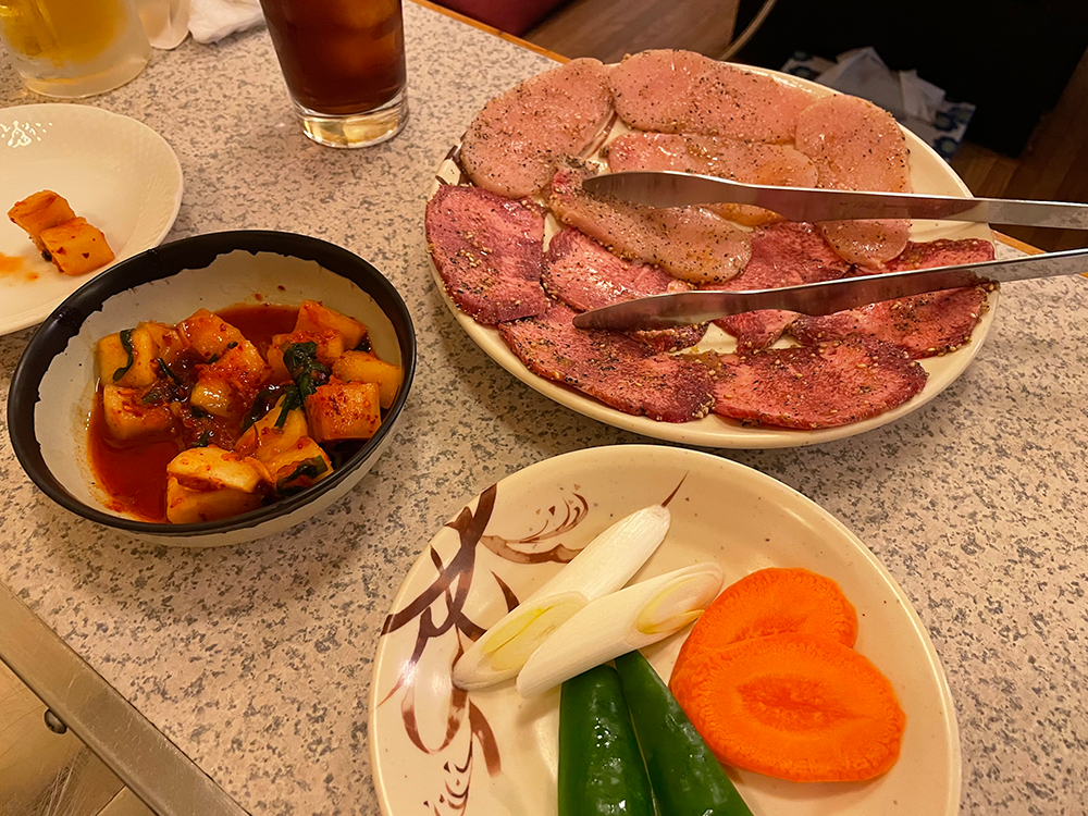 まずは牛タンと鶏むね肉、野菜がきました。