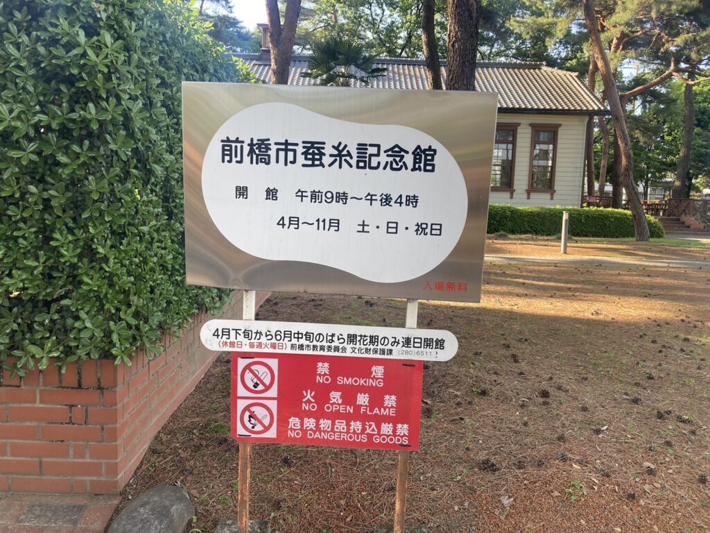 バラ園の奥へ進むと前橋市蚕糸記念館があります。