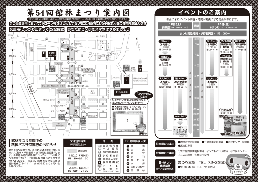 | お問い合わせ | まつり本部:TEL 72-3250 警備本部:TEL 72-3251 |